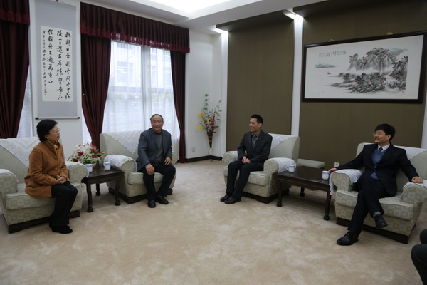 焦作市山阳区教育局楚永红局长(右二)、拱墅区教育局张云雷局长(右一)与我校领导座谈