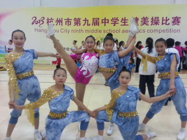 在刚落下帷幕的杭州市第9届中学生健美操比赛中,我校健美操队员积极备战,团结一心,奋力拼搏,取得优异成绩。初一(10)班的张帅妮同学荣获 “体育道德风尚运动员”,祝君老师评为优秀教练员。在此,对认真、刻苦训练的同学所取得的成绩表示祝贺,同时对支持和关心我校健美操队发展的校领导、班主任及各位家长表示衷心的感谢!