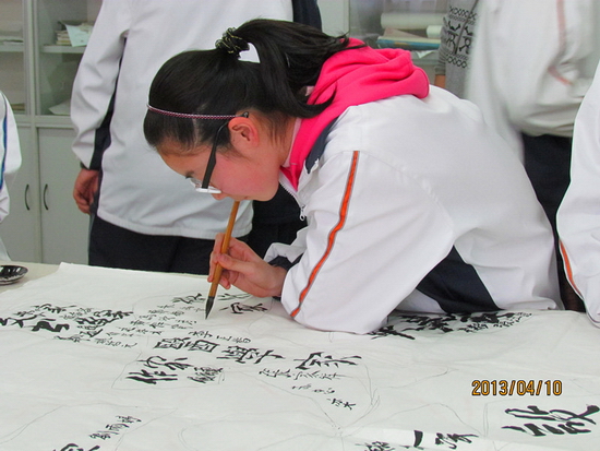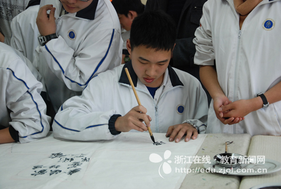 “文澜中学一直以来注重学生的个性发展、全面发展与和谐发展。我们开展的艺术类社团,特别是书画社,就是想培养孩子的道德情操和人文情怀,同时也为了提高孩子们对中国传统文化的认同感、归属感与自豪感。”这是我校薛莹副校长接受记者采访时对书法教育的见解。