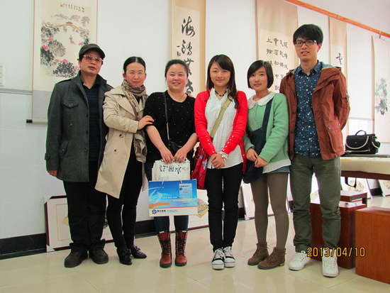 书画社老师与浙江在线记者合影留念