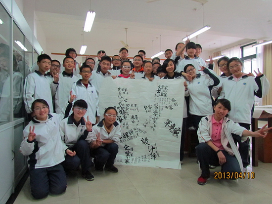 学生们完成作品后立即合影