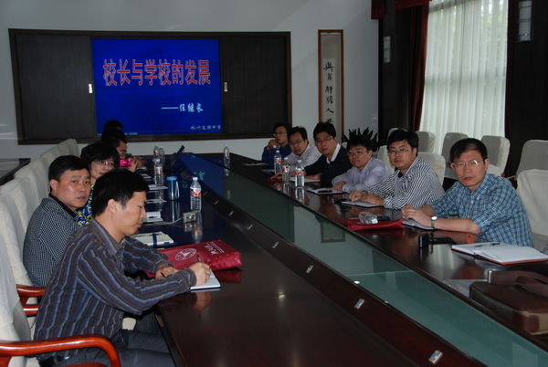 4月16日下午浙江大学组织的浙派名校长培养工程班40人到我校参观考察,18日上午浙江大学承办的“校长核心素质与专业能力研修班”共36人,也在我校举行培训活动。任继长校长分别给两个培训班学员作了《校长与学校发展》专题讲座。任校长结合自己长期的校长工作实践,从校长职责、学校管理、校长素养等方面深入浅出地讲述了校长对学校发展的重要性,充分展示了任校长丰富的治校经验,受到培训班校长们的一致称赞。培训班学员都参观了校园和教学设施,浙派名校长培养工程班学员在我校培训时正是我校社团活动时间,所以还有幸观摩了我校学生社团活动,高度肯定了我校学生们才艺出色、文明礼貌。