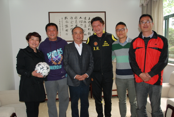 4月21日下午,国青队教练、前国足著名前锋谢晖和上海全运队教练、前国奥队队长黄翌来我校参观指导,受到我校领导任继长校长、薛莹副校长的热情欢迎。宾主双方在体育场的贵宾室分别交换礼物。