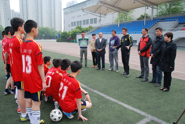 随后,谢晖、黄翌两位教练在我校领导任校长陪同下参观了美丽的校园,并与任校长、薛莹副校长以及体育组老师合影留念。