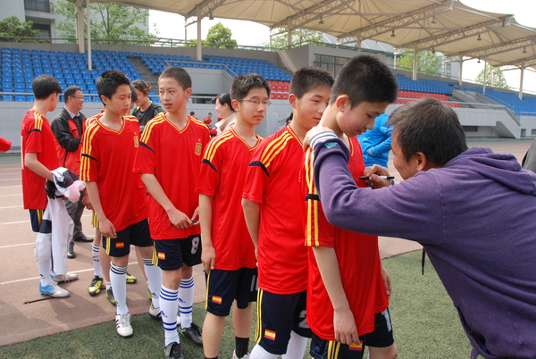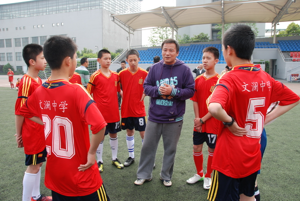 之后,谢晖、黄翌两位教练与我校足球社队员进行了互动交流。在交流活动中,两位足球明星还与我校足球社队员分享了自己成长为出色的球员的经历,并勉励我校足球社同学再接再厉,展现文澜的体育精神。随后,两位教练员带领我校足球社同学分组进行了40分钟的对抗赛,让同学们深切体会到与两位偶像一起驰骋绿茵场的魅力。