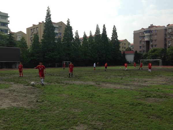 有了第一场的大胜,我们不禁有些轻敌,次日面对首轮0比3不敌行知的大关中学,我们似乎都不在状态。大关的全场紧逼战术也让锋线哑了火。吴邦铨一拿球就会遭到两三个人地围抢。但面对气势如虹的反扑,后卫王信杰和杨振宇用他们的默契将对方气势汹汹的进攻一一化解,而前锋队员也紧抓对方的失误拿下两球。