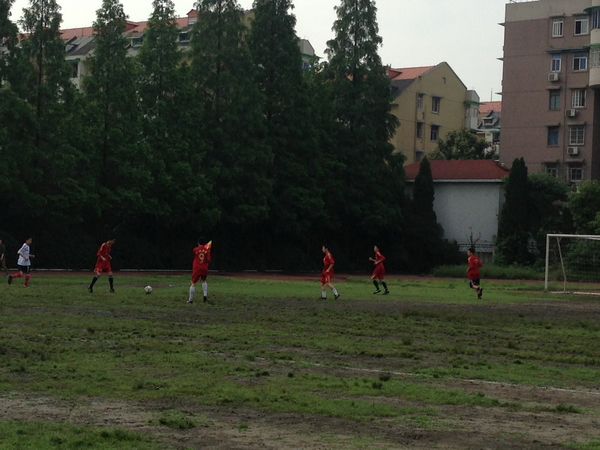 我们早早地来到了行知中学,顶着绵绵的雨,迎来了我们第一个对手——启航中学。我们穿着红色球衣,似一团火焰,驱散了雨带来的寒意。开场哨响,我们就展开了猛攻,3分钟不到,队长吴邦铨就打入一球,同时也掀起了进球狂潮。张天艺在两分钟之后扩大了领先优势,比分变成了2比0。谁也没想到第三球来得如此之快,聂际康右路起脚传中,对方后卫头球解围,不慎把球顶入自家球门,3比0。我们的阵型一点一点压上,右边卫聂际康也抓住机会,在禁区外突施冷箭,球窜入球门左下角。4比0!吴邦铨用一记精彩的任意球直接破门结束了上半场。下半场,吴邦铨大开杀戒,无人可挡,连入两球,完成大四喜。比分也最终定格在了7比0。