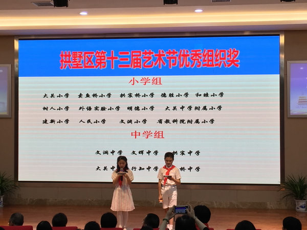 六一儿童节到来之际,我校薛莹副校长和少先队大队辅导员尹婧老师参加了由拱墅区教育局、少工委举办的2016年拱墅区庆祝“六一”儿童节表彰大会暨“喜迎G20 点赞美丽行为”主题故事会。
