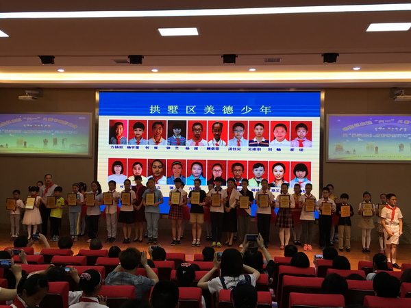 大会通过拱墅区第四届美德少年现场展示,我校初二5班的沈可同学凭借助人为乐、关心集体和他人、热心公益的优秀品质获得第四届拱墅区“美德少年”的称号,树立了我区少年儿童最美典范,展示了文澜人身边的美丽行为。同时,我校在拱墅区第十三届中小学生艺术节中获得了团体优秀组织奖、初一4班、5班、7班被评为拱墅区2015学年特色雏鹰中队,尹婧老师、叶梦醒老师、吕海国老师被评为优秀少先队辅导员。