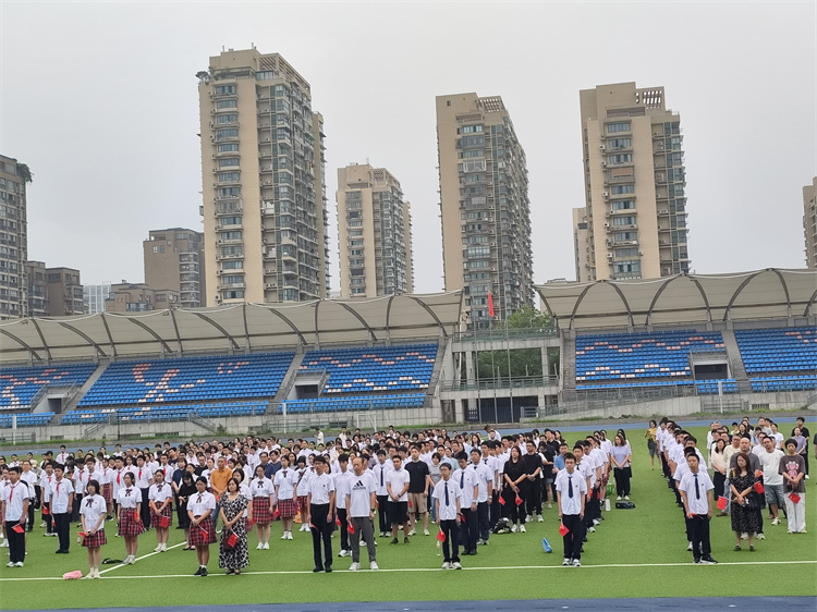 金秋十月,丹桂飘香。10 月 1 日上午 8 时,杭州市文澜中学校园内红旗飘扬、气氛庄重,400 余名学生与家长代表齐聚操场,共同参加庆祝中华人民共和国成立 76 周年升国旗仪式,以青春之名向祖国母亲献上诚挚祝福。