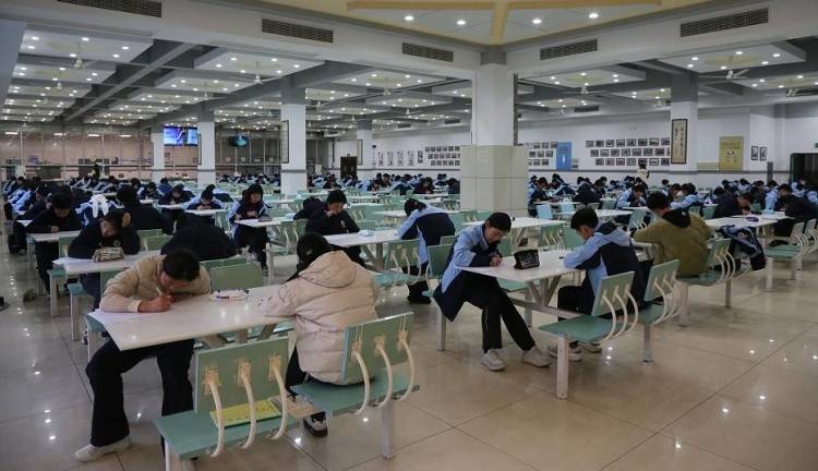笔尖继续在纸上舞动,学生们或凝神思索,或奋笔疾书,将内心的风景化为文字的世界。食堂窗外,冬日的阳光透过玻璃,为这专注的场景镀上一层温暖的光晕。